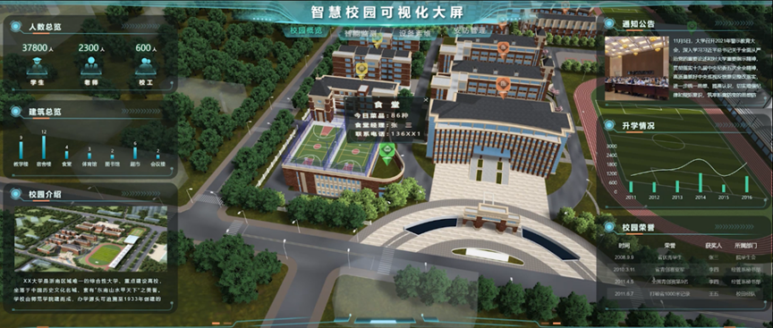 數(shù)字孿生(shēng)智慧校(xiào)園三維可(kě)視(shì)化(huà)管理(lǐ)平台利用(yòng) BIM技(j☆ì)術(shù)建立虛實對(duì)應的(de)數(shù)字模型,自(zì)規劃、設計(jì)、施工(gōng)、竣工(gγōng)階段一(yī)脈相(xiàng)承,保留了(le)建築的(de)所有(yǒu)真實信息,對(duì)校(xiào)園整體(tǐ)進行(xíng)三維建模。通≈(tōng)過加載設備的(de)實時(shí)運行(xíng)數(shù)據,如(rú)報(bào)警、故障分(fēn)别以紅(hóng)色、黃(huáng)色閃爍綁定設備模型進顯示等。實現(xiàn)校(xiào)園管理(lǐ)綜合運營态勢一(yī)屏掌握